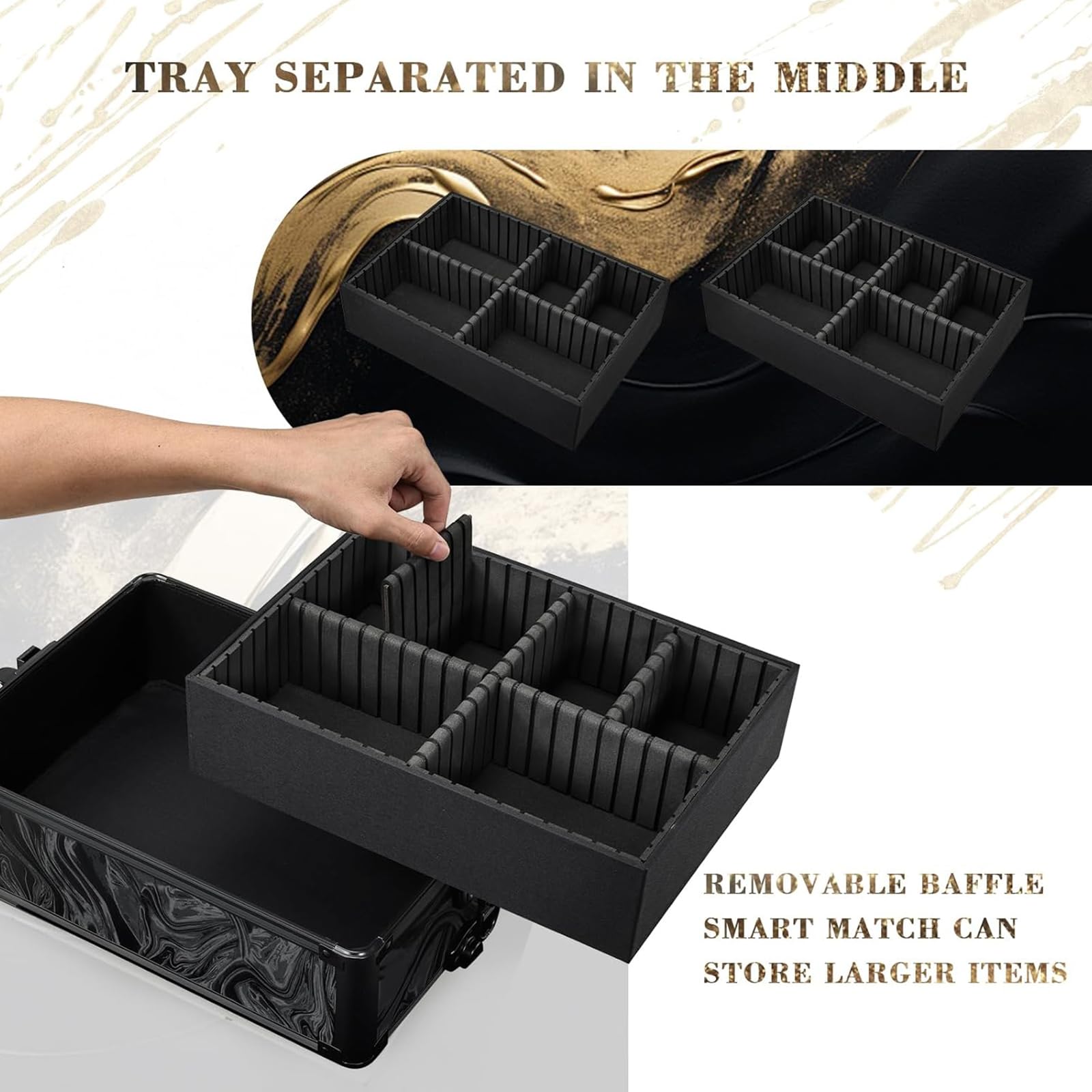 - Spacious compartments for makeup, hair tools, or nail supplies